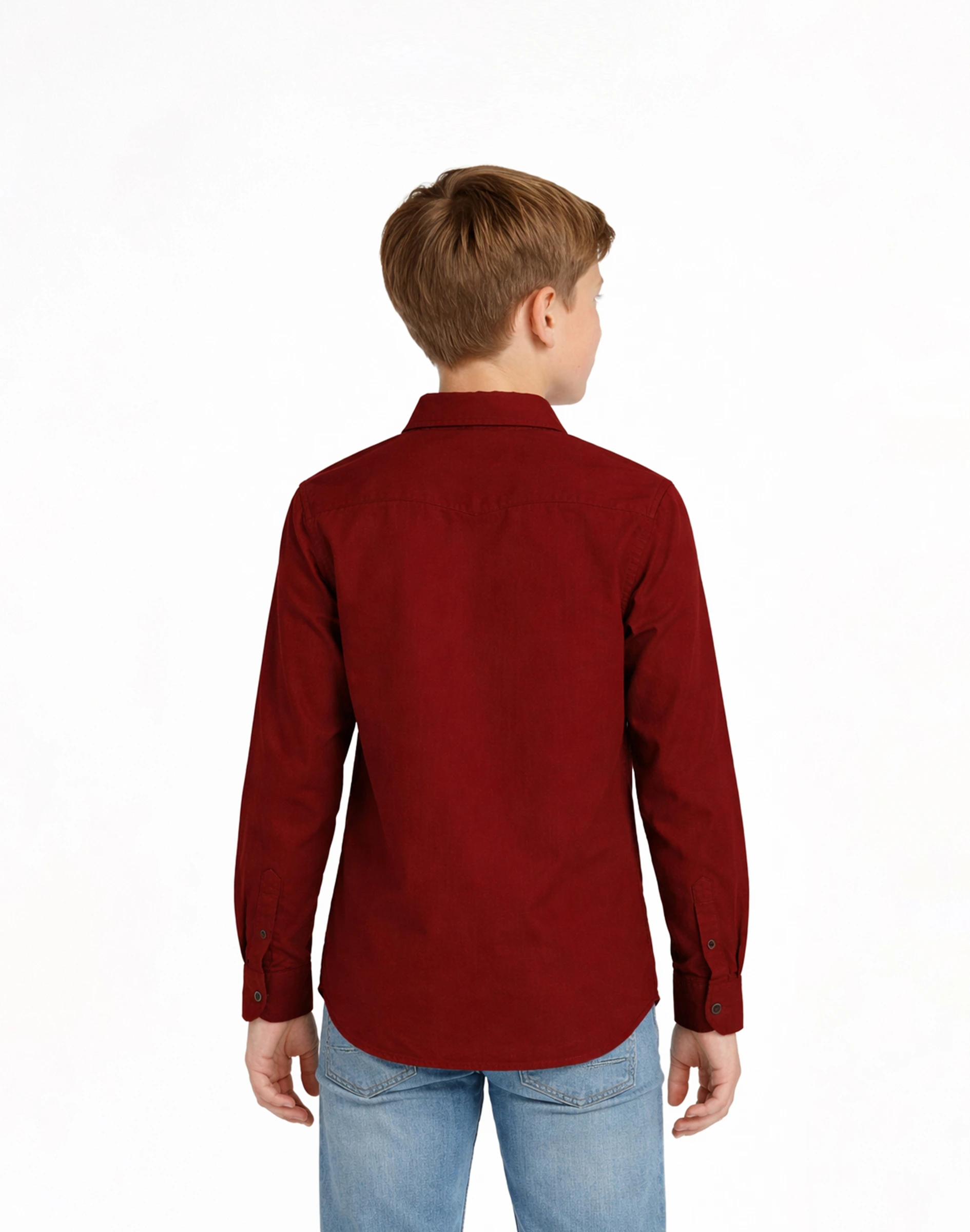 Classic maroon shirt for boys with a clean solid design perfect for casual and semi-formal occasions.