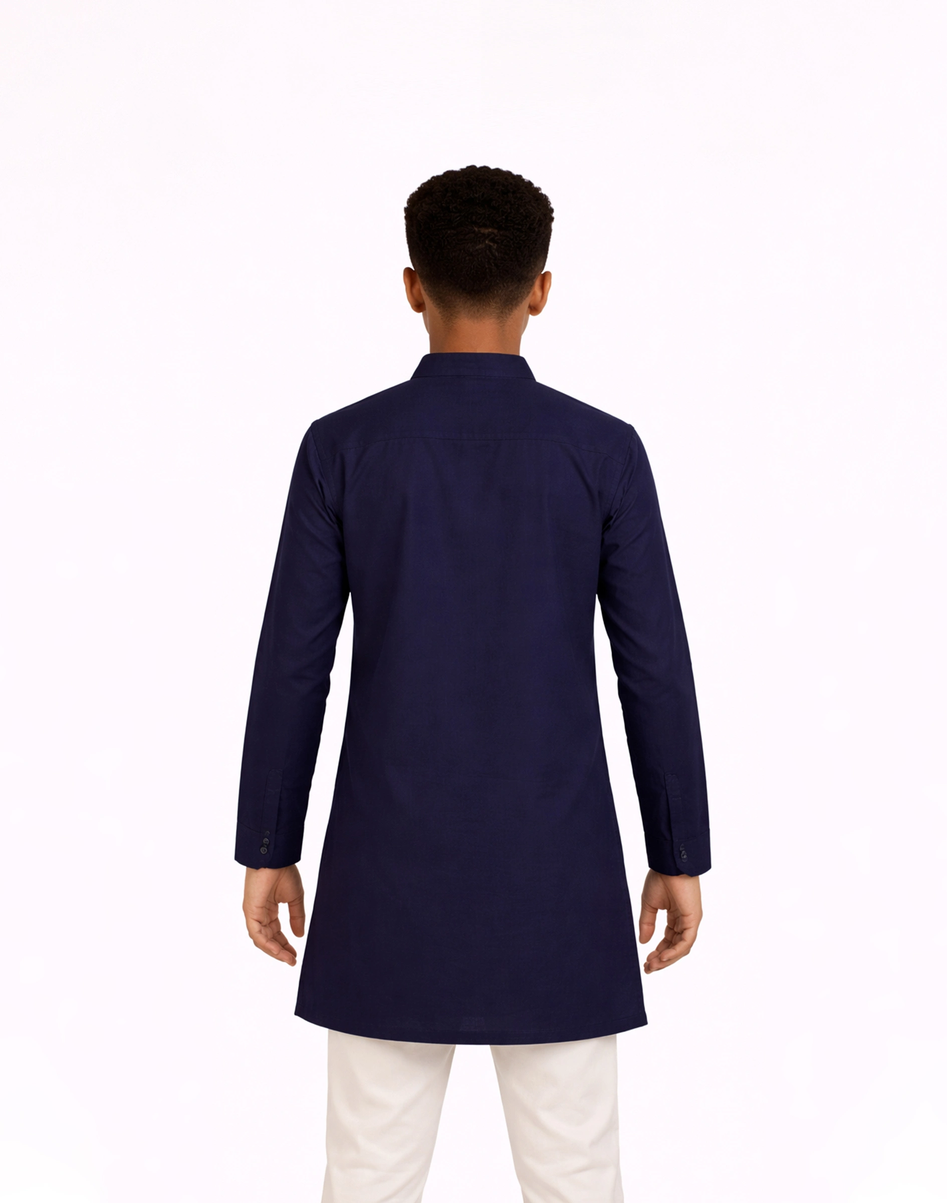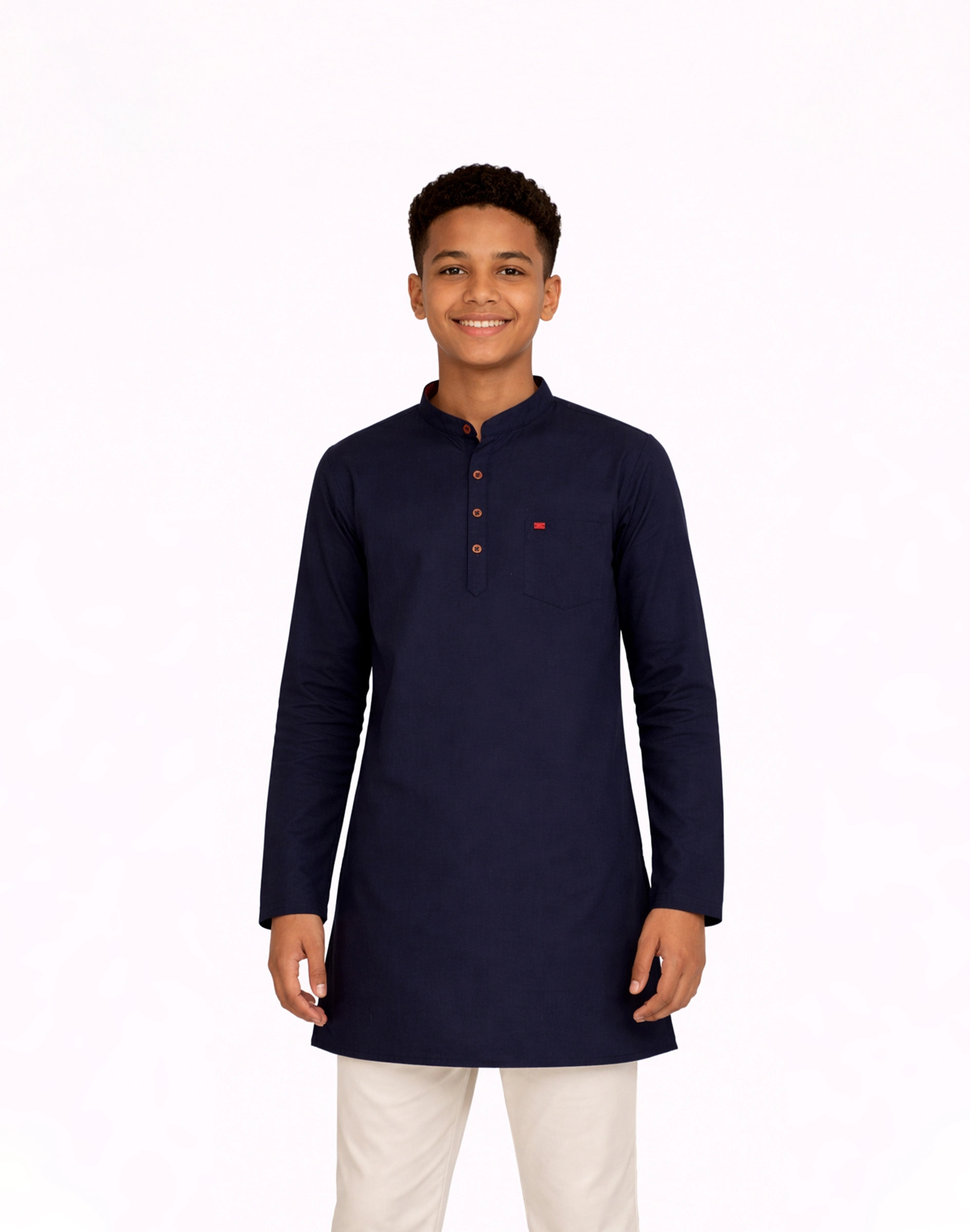 Classic navy blue kurta for boys with a clean, minimal design perfect for festive and traditional occasions.