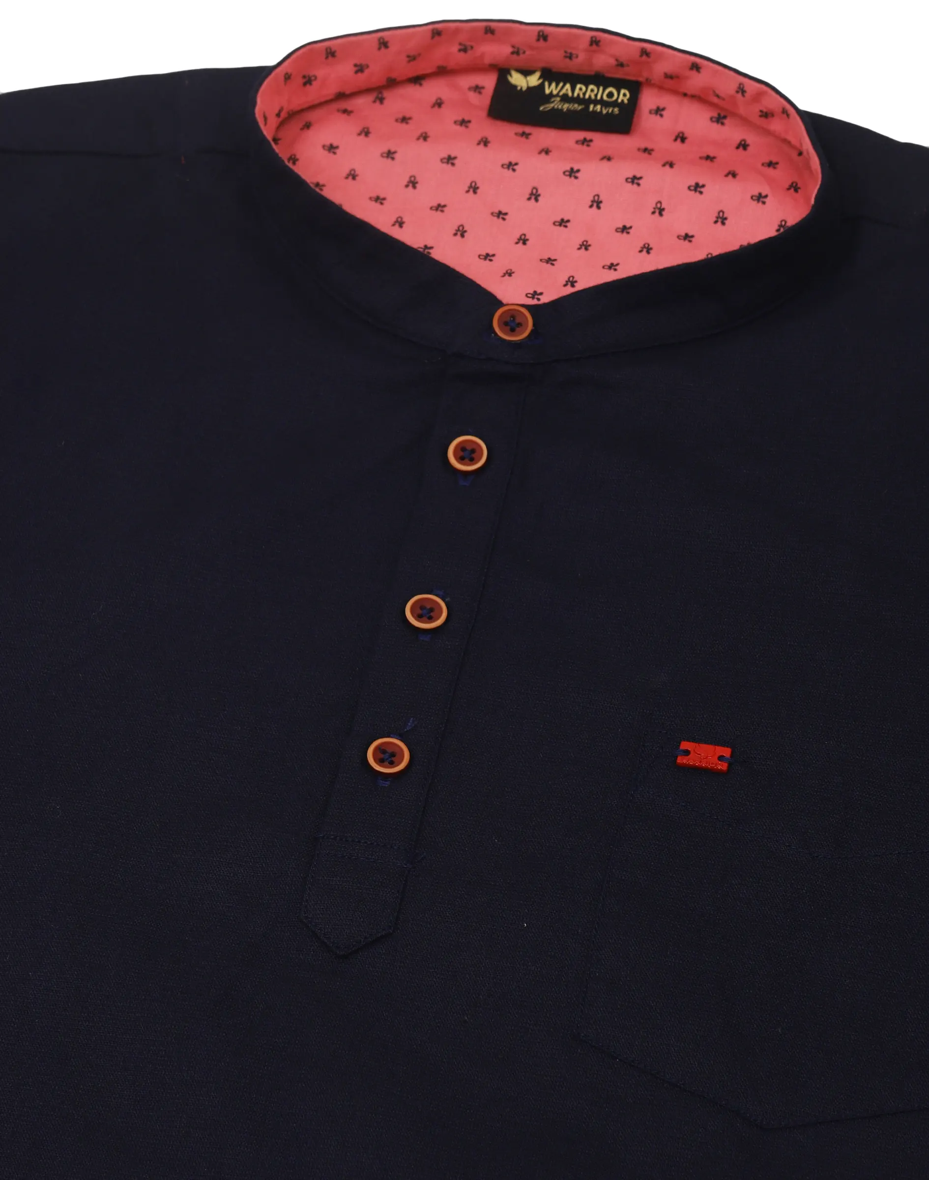 Warrior Kids Navy Blue Minimal Festive Short Kurta