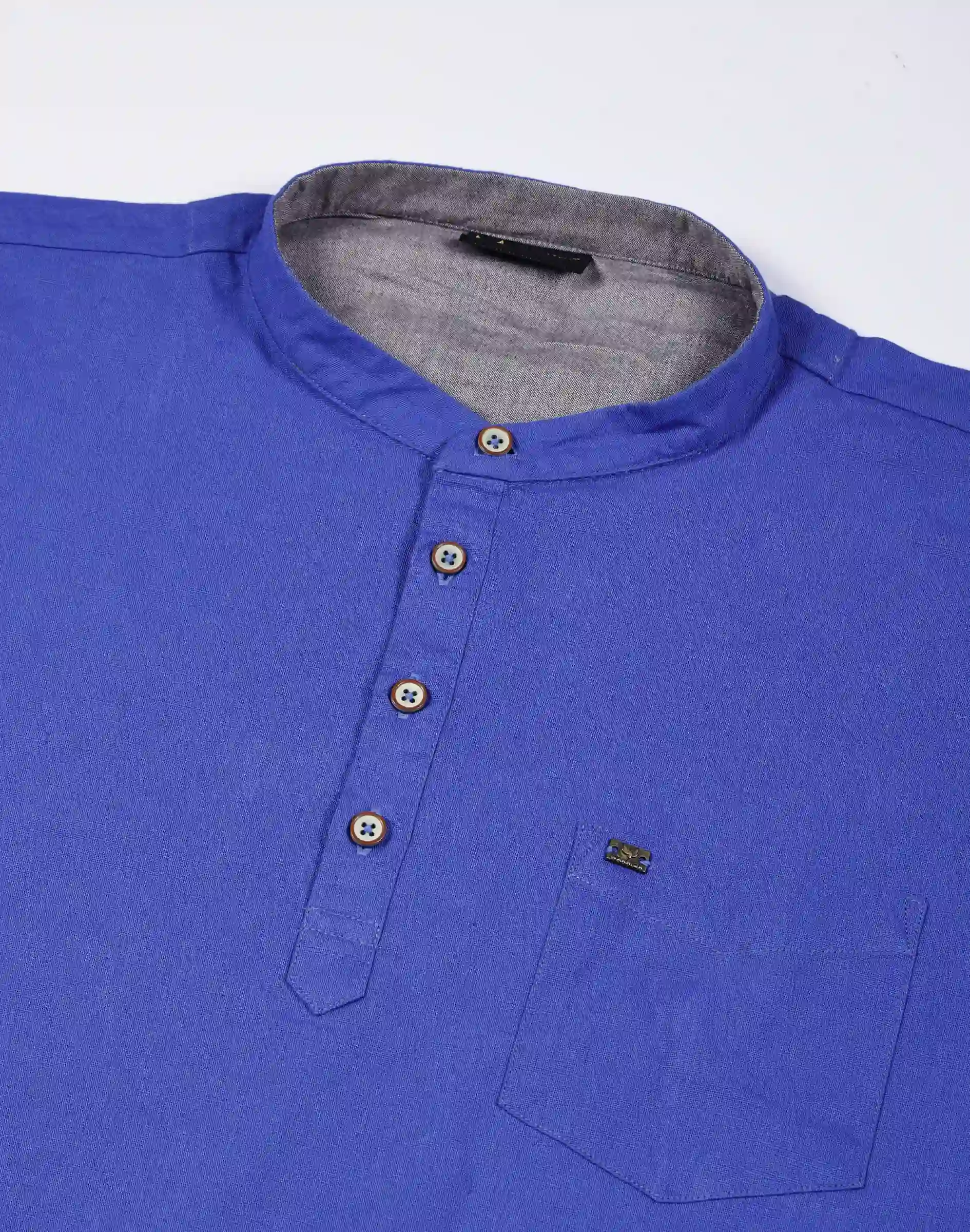 A vibrant royal blue kurta crafted in breathable premium cotton with a clean silhouette, classic band collar, and smart pocket detailing.