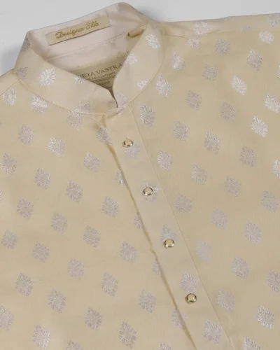 Maurya Vastra Ivory Textured Designer Silk Brocade Kurta
