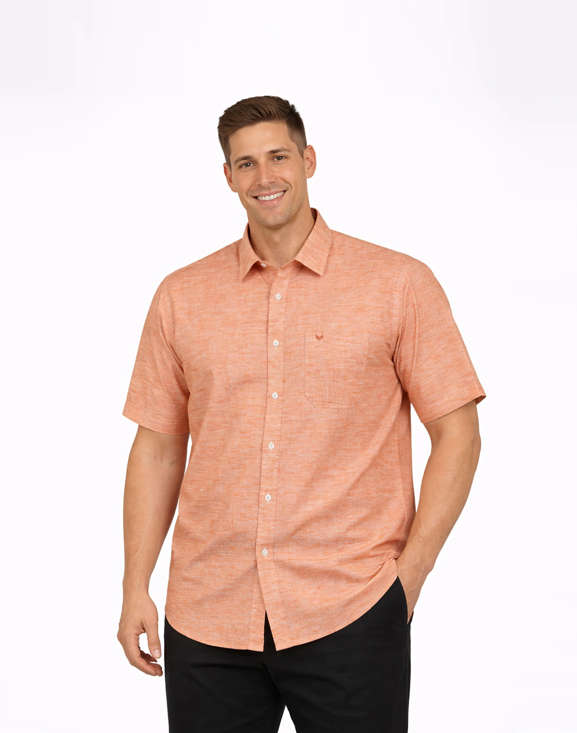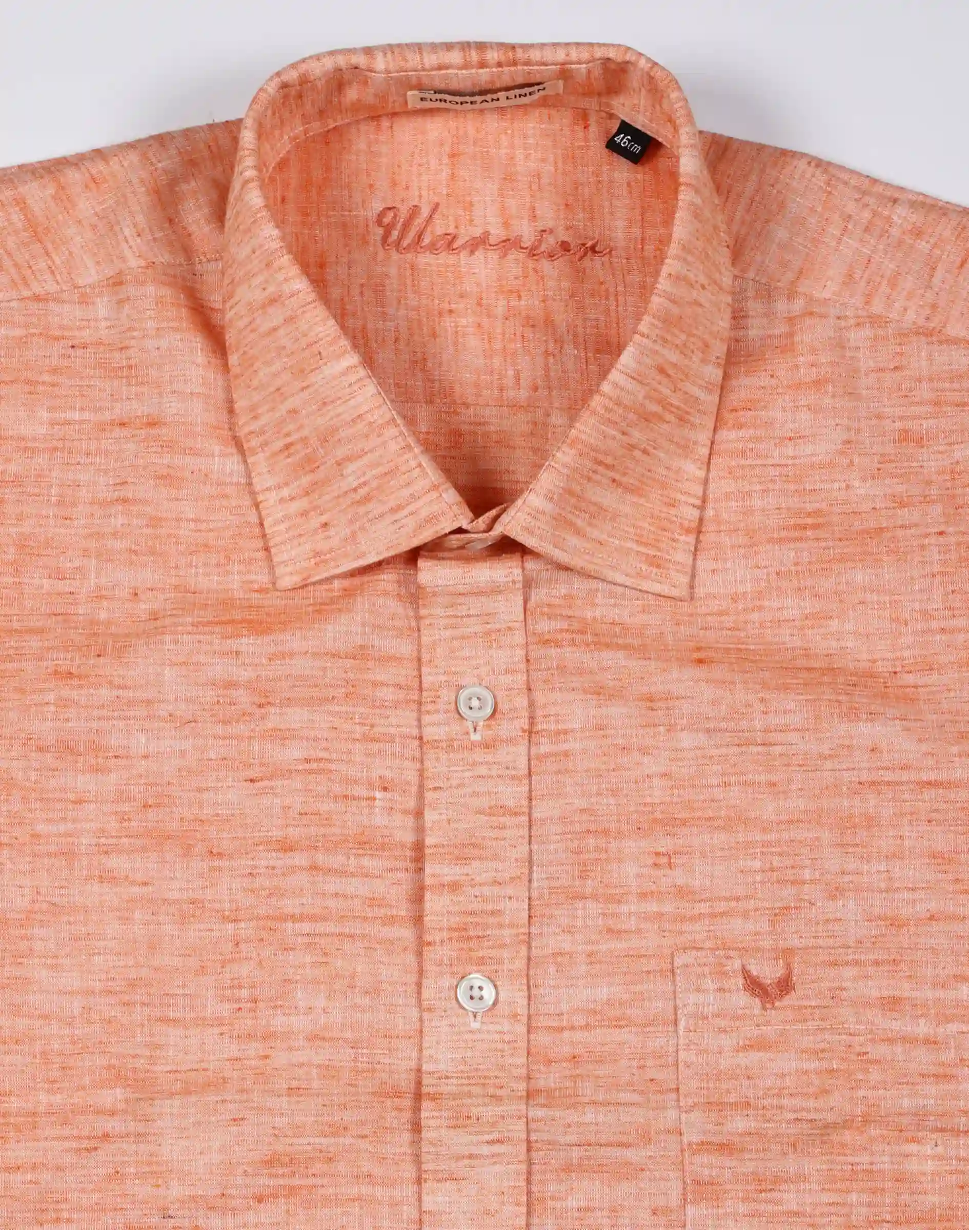 Refresh your wardrobe with the subtle charm of the Warrior Peach European Linen Classic Shirt. Crafted from premium European linen, this shirt offers superior breathability and a naturally textured finish that enhances its refined yet relaxed appeal. The soothing peach tone brings a modern, fresh aesthetic—perfect for casual outings, summer gatherings, or smart daytime occasions. Designed with a classic spread collar, short sleeves, and a tailored fit, it ensures a clean silhouette while maintaining maximum comfort. The front button closure and minimal chest pocket detailing add a touch of functionality while keeping the overall look sleek and versatile. Lightweight and airy, this linen shirt is ideal for warm weather, making it a must-have staple for effortless styling.