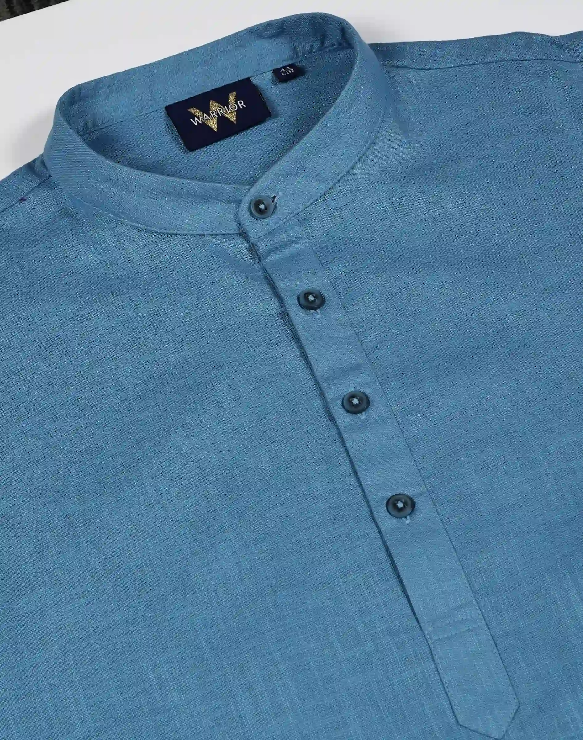 Warrior Sky Blue Cotton Mandarin Collar Kurta