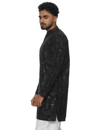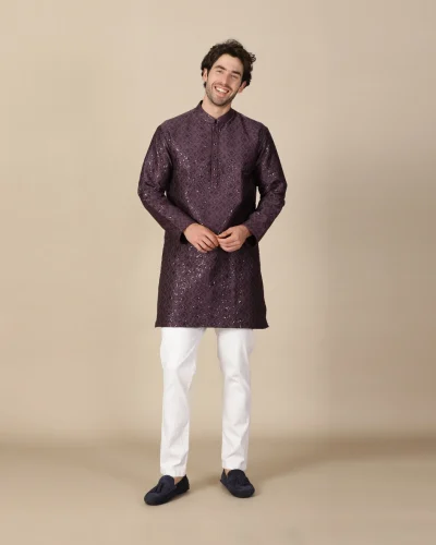 Maurya Vastra Ivory Sequin Buti Designer Silk Kurta