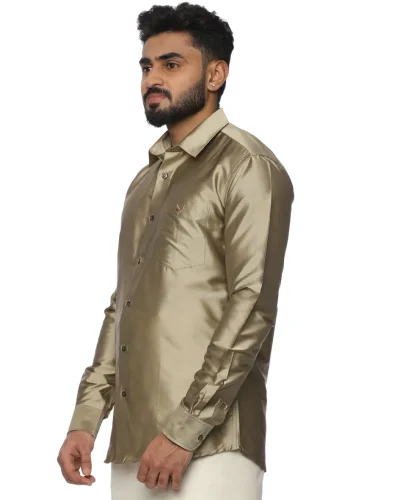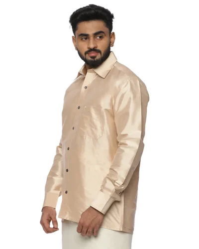 Scotwilson Light Gold Ethnic Pure Silk Classic Full Sleeve Shirt