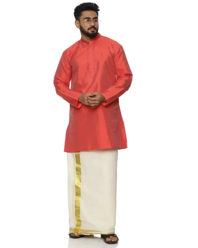 Maurya Vastra Boys Peach Textured Festive Kurta