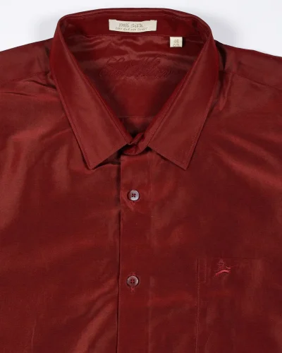 Scotwilson Men Deep Maroon Premium Pure Silk Full Sleeve Shirt