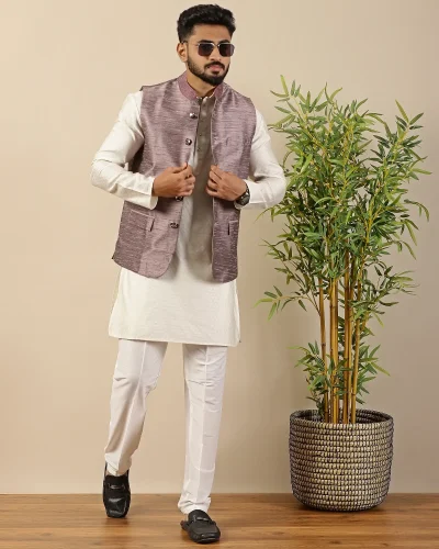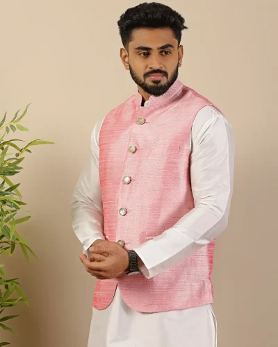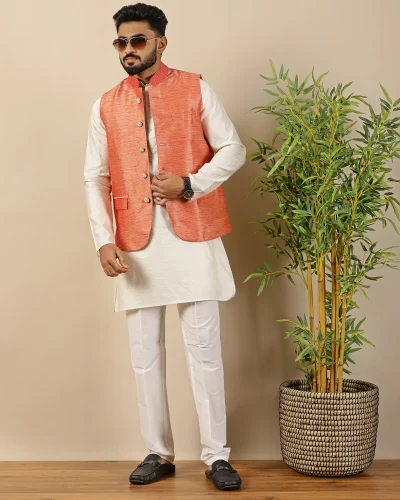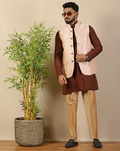 Maurya Vastra Boys Peach Textured Festive Kurta